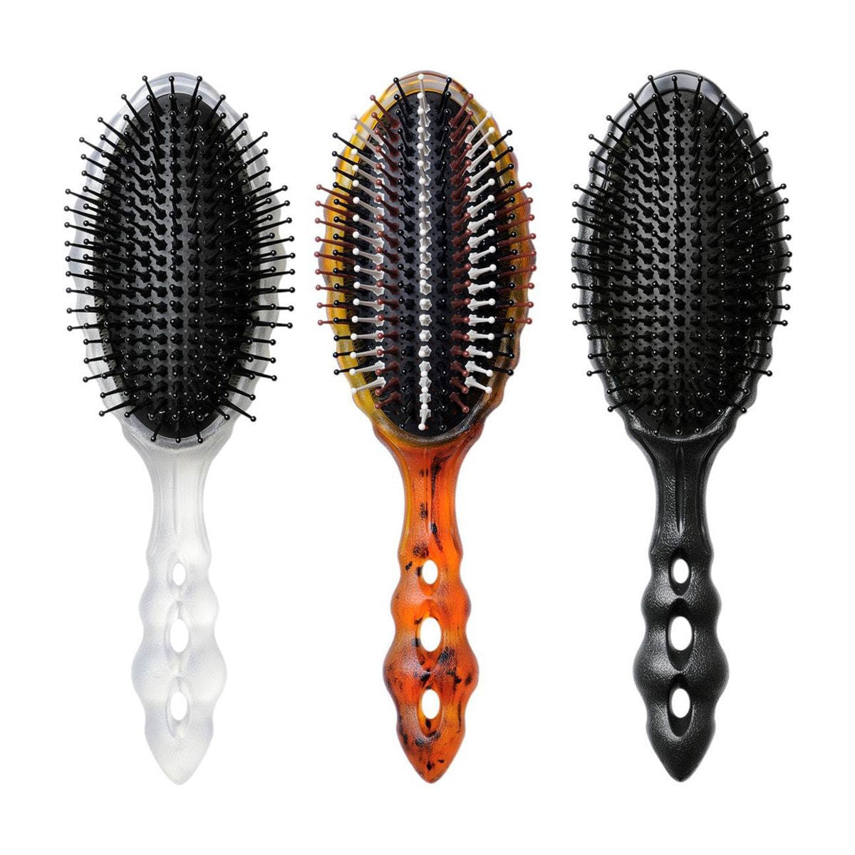 また、パドルブラシとしては新しい丸みを帯びた角の無い形状がブラシを部分的に使いやすく、テンションをかけたい部分、かけたくない部分を1本のブラシで使い分けることができます。