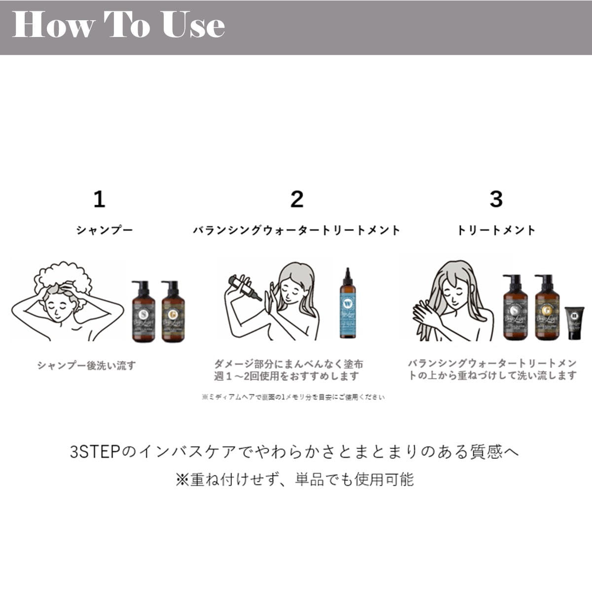 3STEPのインバスケアでやわらかさとまとまりのある質感へ